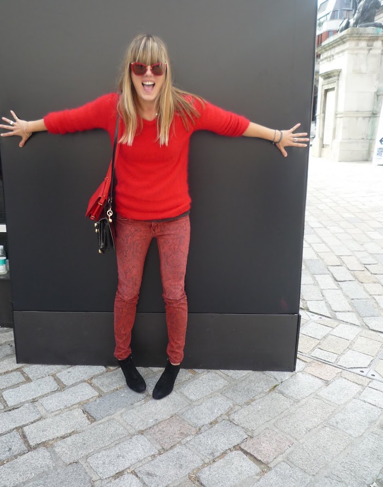 TIP...velvet leggings give a snakeskin shirt a rock edge and love this coccoon coat which is the perfect shape for the season and the simple bag has the snakeskin handles to bring the look together
