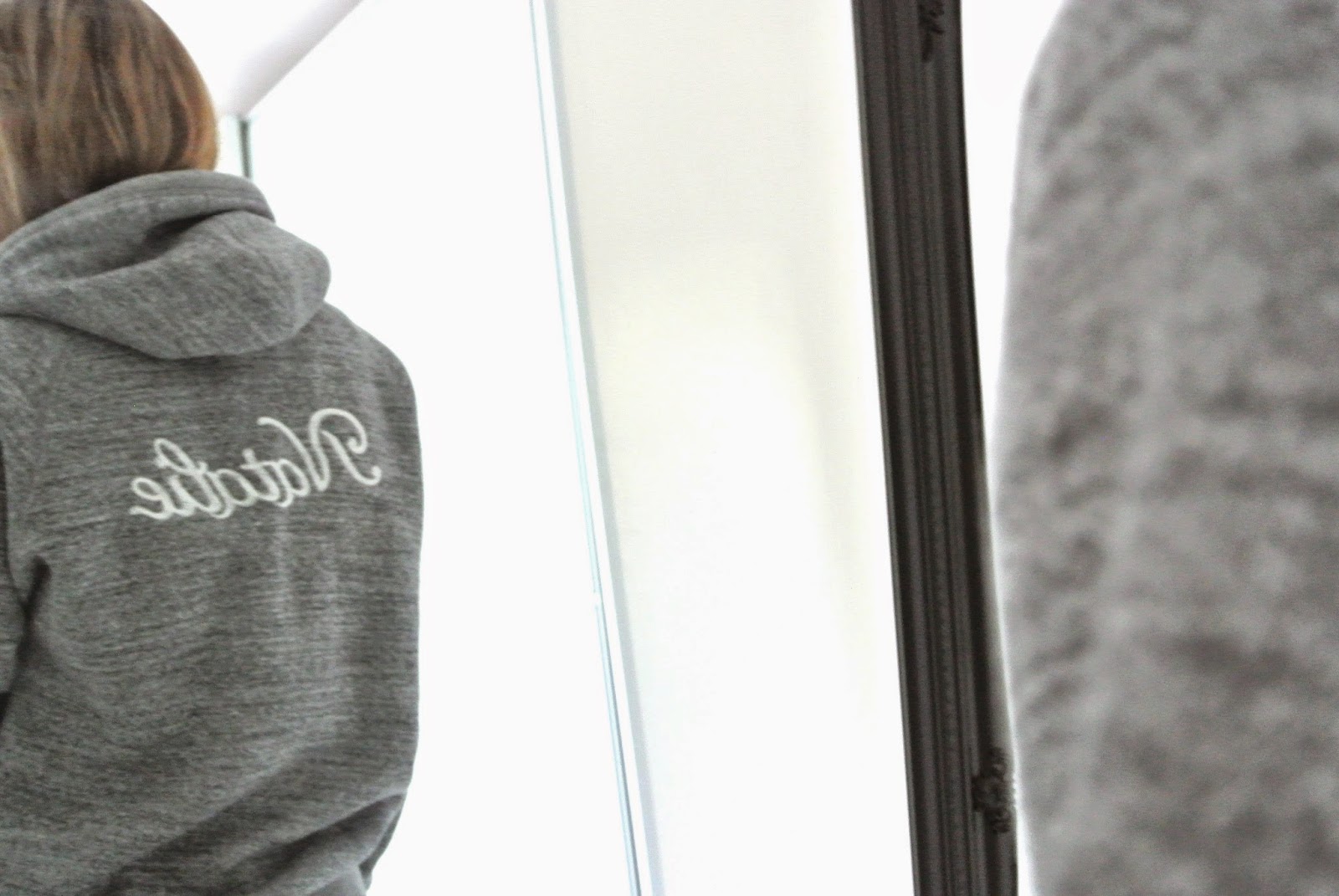 TIP... this look ticks two more trend boxes; head to toe grey and the seventies but this is your way to wear the flare for day add a hoodie but get your name on the back this is the latest way in customising and 'say my name' is the perfect seventies spin on modern day clothing (see link below to get your done on one of their newest designs)